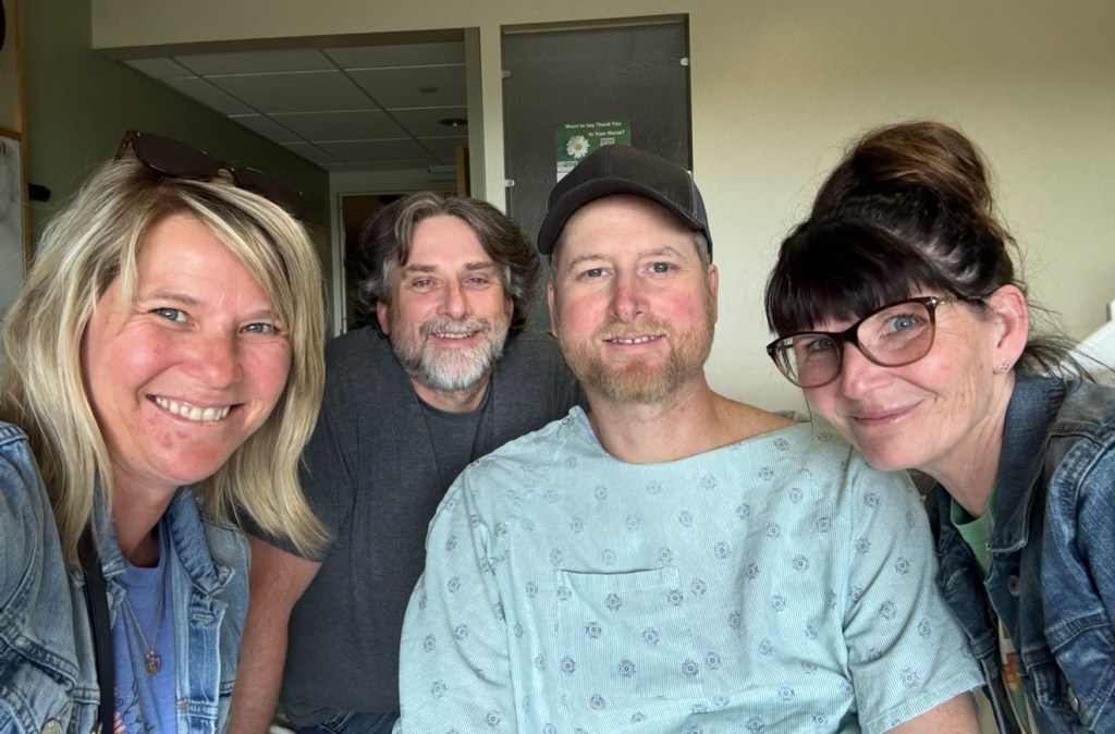 When you can’t leave, they bring the party to you. My sister Jenny and my cousins Chris, Laura and Tj.